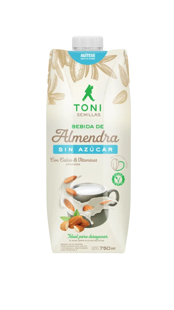 Toni Semilla Bebida de Almendras, es una bebida fortificada  con 35% de Calcio y adicionada Vitamina A y D.  Ideal para tomar directa o en preparaciones ofrece un delicioso sabor y consistencia.  Podemos disfrutar TONI SEMILLAS en su opción original y vainilla.