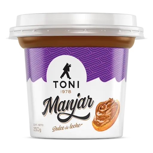 Nuestro Manjar está hecho con 100% leche Toni, lo que le da una cremosidad y sabor únicos. Disfrútalo sólo o acompañado con galletitas, tostadas o en tus diferentes en tus postres favoritos.